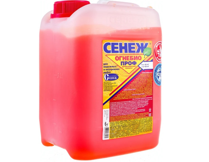 Средство Сенеж Огенибио Проф предназначено для комплексной защиты древесины от горения, воспламенения, распространения пламени, гниения, плесени, синевы и насекомых-древоточцев внутри помещений и на открытом воздухе (под навесом) в условиях гигроскопического и конденсационного увлажнения без контакта с грунтом, воздействия атмосферных осадков, почвенной влаги.